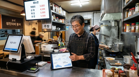 | ▲ 위 사진은 기사 내용과 무관하게 AI(인공지능)가 생성한 이미지입니다. 소비쿠폰 전후 매출 변화를 확인하는 소상공인 사장님. (사진 = 챗GPT) |