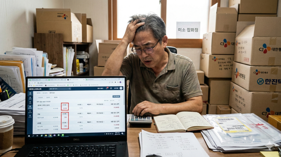 | ▲ 위 사진은 기사 내용과 무관하게 AI(인공지능)가 생성한 이미지입니다. 플랫폼 수수료 부담에 시름하는 이커머스 입점 소상공인. (사진 = 챗GPT) |