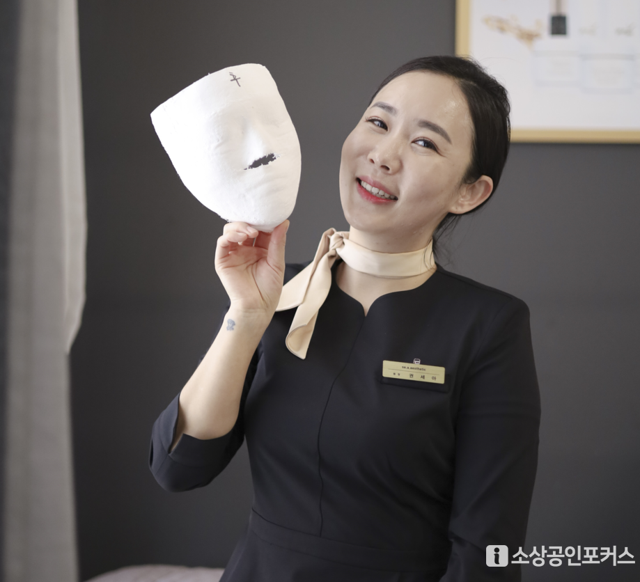 A. 제가 피부 미용업을 하게 된 경위는 원래 저는 20대 때 직장 생활을 했었고요. 연봉도 되게 많이 받는 일을 하고 있었는데요. 솔직히 대기업 다니는 친구들이 시간은 많고 돈을 많이 벌거든요. 그러다 보니까 휴가도 많이 갈 수 있어서 그 당시에 제가 여행을 좋아한 터라 해외여행을 좀 많이 다녔거든요. 그러던 중 여름 스포츠에 좀 빠지면서 얼굴에 기미가 많이 생겼는데요. 이 기미 때문에 피부과에 가서 피부 치료를 하다가 레이저 부작용인 진피 특수 부작용이라는 걸 제가 겪게 됐고 그거를 치료하기 위해서 병원을 다니다가 이럴 거면 내가 조금 더 깊게 공부를 해볼까 생각했죠. 그래서 회사를 그만두고 피부 국가자격증을 따고 에스테틱 숍을 오픈하게 된 거죠.