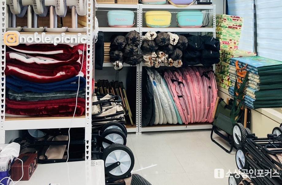 | ▲ 한강텐트대여 노블피크닉의 대여품들 (사진 = 이경희 기자 / 소상공인포커스 DB) |