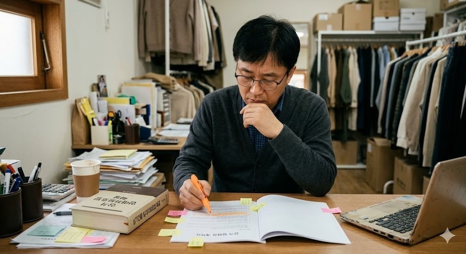 | ▲ 위 사진은 기사 내용과 무관하게 AI(인공지능)가 생성한 이미지입니다. 임대차 계약서를 검토하는 소상공인의 모습. 법률 지식 부족으로 손해를 보는 점주들이 많아 기본적인 법령 이해가 중요하다. (사진 = 제미나이) |