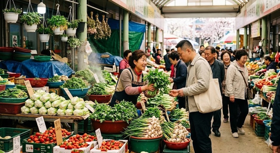 | ▲ 위 사진은 기사 내용과 무관하게 AI(인공지능)가 생성한 이미지입니다. 봄 시즌 제철 식재료를 판매하는 시장의 모습. 제철 재료를 활용하면 원가 절감과 동시에 고객 만족도도 높일 수 있다. (사진 = 제미나이) |