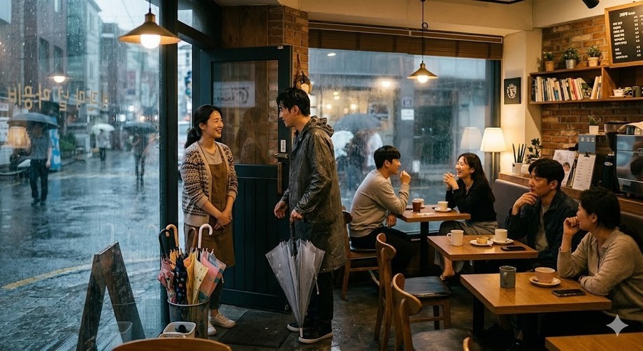 | ▲ 위 사진은 기사 내용과 무관하게 AI(인공지능)가 생성한 이미지입니다. 장마철에도 고객들을 맞이하는 소상공인 매장의 모습. (사진 = 제미나이) |
