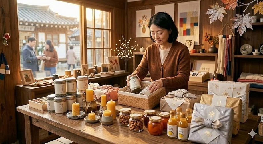 | ▲ 위 사진은 기사 내용과 무관하게 AI(인공지능)가 생성한 이미지입니다. 연말 선물 시장을 겨냥한 소상공인의 상품 준비. (사진 = 제미나이) |