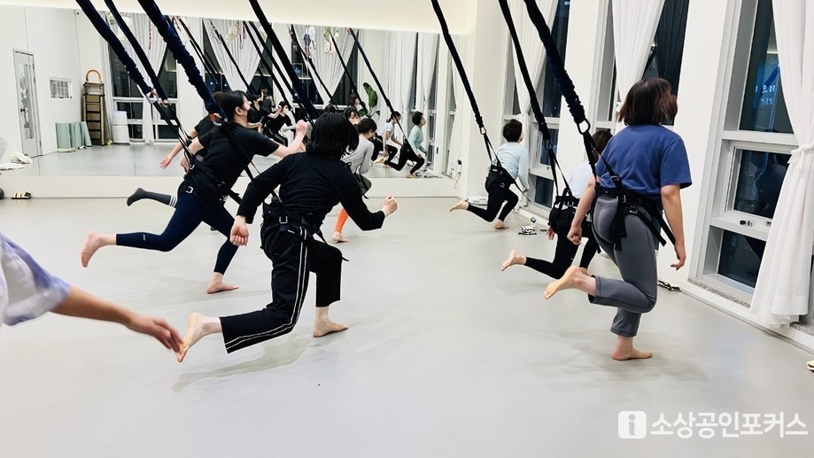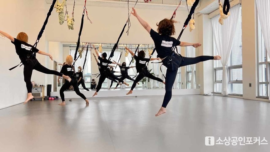 | ▲ 제이스튜디오 플라잉요가 수업 현장 (사진 = 이경희 기자 / 소상공인포커스 DB) |