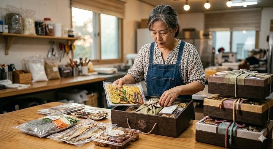 | ▲ 위 사진은 기사 내용과 무관하게 AI(인공지능)가 생성한 이미지입니다. 추석 선물세트 준비에 한창인 소상공인의 작업 현장. (사진 = 제미나이) |