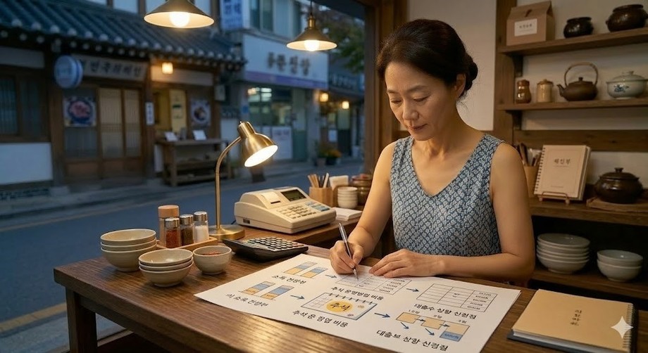 | ▲ 위 사진은 기사 내용과 무관하게 AI(인공지능)가 생성한 이미지입니다. 명절 자금 운용을 계획하는 소상공인의 모습. (사진 = 제미나이) |