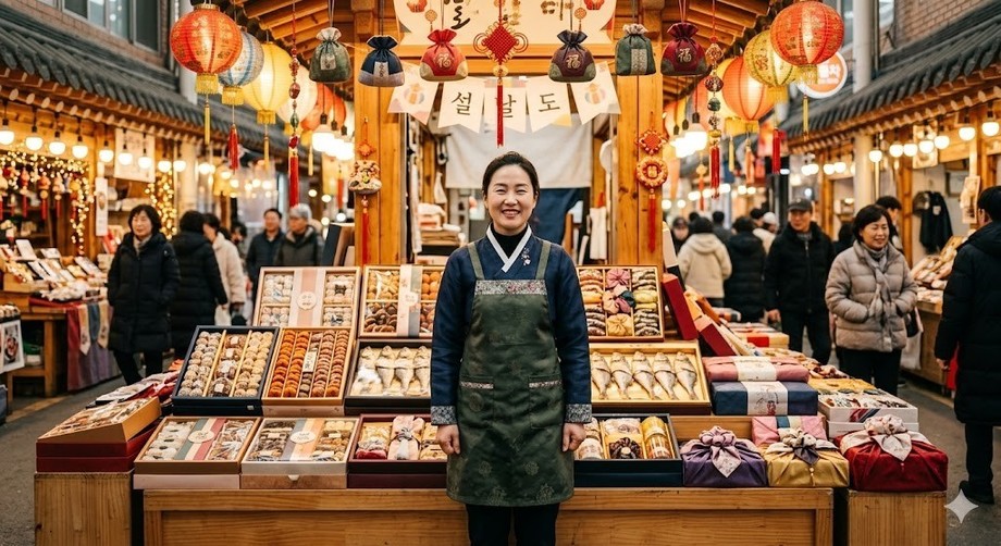 | ▲ 위 사진은 기사 내용과 무관하게 AI(인공지능)가 생성한 이미지입니다. 설 명절을 맞아 전통과 현대적 감각이 어우러진 마케팅 전략으로 명절 대목을 노리는 소상공인들. (사진 = 제미나이) |