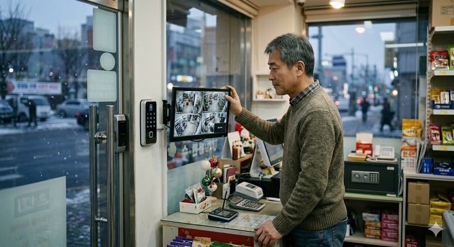 | ▲ 위 사진은 기사 내용과 무관하게 AI(인공지능)가 생성한 이미지입니다. 설 연휴 빈 가게를 지키기 위한 첨단 보안시스템 도입이 소상공인의 필수 전략이 되었다. (사진 = 제미나이) |