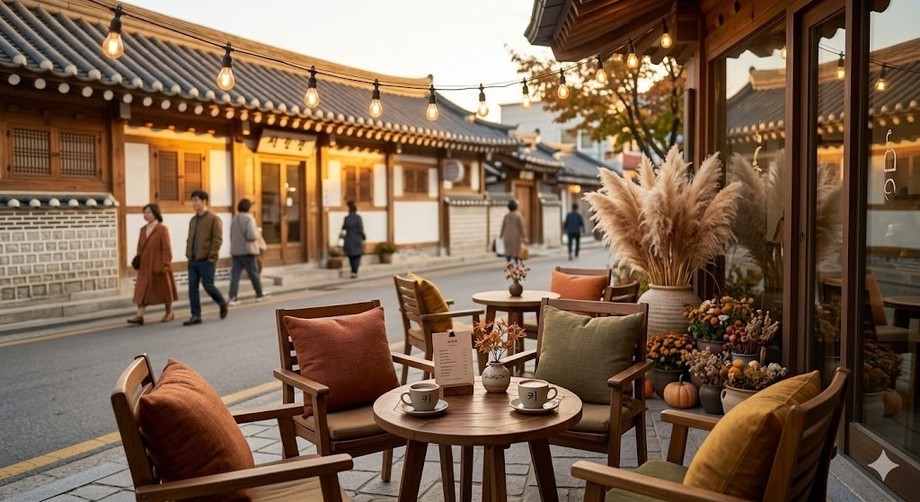 | ▲ 위 사진은 기사 내용과 무관하게 AI(인공지능)가 생성한 이미지입니다. 감성적으로 꾸며진 가을 야외 테라스의 세부 모습. (사진 = 제미나이) |