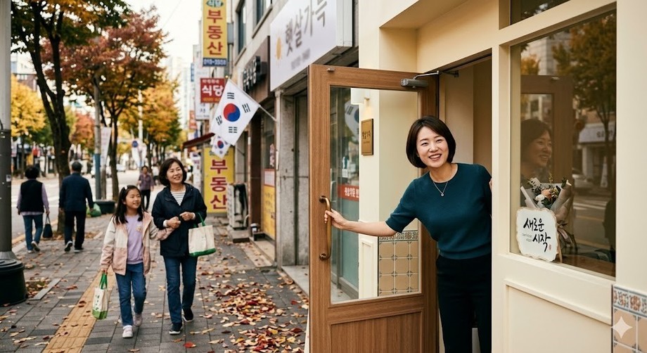 | ▲ 위 사진은 기사 내용과 무관하게 AI(인공지능)가 생성한 이미지입니다. 가을 시즌에 새로 문을 여는 소상공인 창업가. (사진 = 제미나이) |