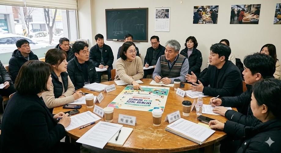 | ▲ 위 사진은 기사 내용과 무관하게 AI(인공지능)가 생성한 이미지입니다. 상인회 중심의 공동 마케팅으로 지역 경제를 활성화하는 소상공인들. (사진 = 제미나이) |