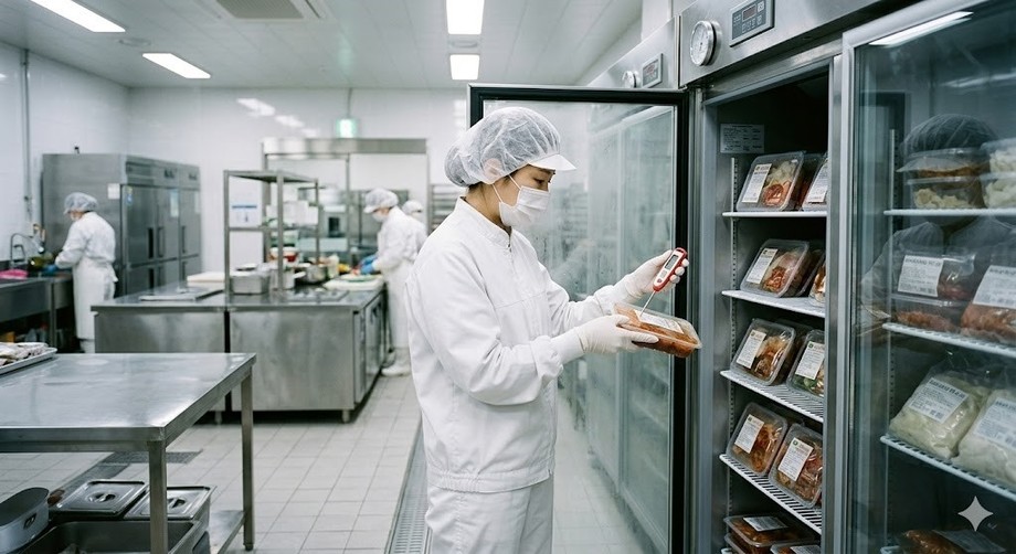 | ▲ 위 사진은 기사 내용과 무관하게 AI(인공지능)가 생성한 이미지입니다. 겨울철 식품 위생 관리와 온도 관리로 명절 식중독을 예방하는 식품업 사업자. (사진 = 제미나이) |