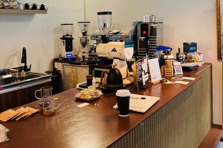 | ▲ 온고지신 바 카운터. 에스프레소 머신과 온고지신 로고가 새겨진 우드 사인이 조화를 이루고 있다. (사진 = 이경희 기자 / 소상공인포커스 DB) |