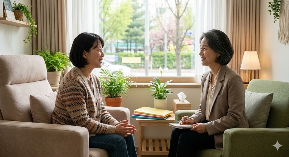 | ▲ 위 사진은 기사 내용과 무관하게 AI(인공지능)가 생성한 이미지입니다. 전문가의 도움을 받아 번아웃 극복에 나선 소상공인의 모습이 희망의 신호를 보내고 있다. (사진 = 제미나이) |