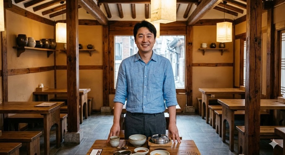 | ▲ 위 사진은 기사 내용과 무관하게 AI(인공지능)가 생성한 이미지입니다. 서울 익선동에서 한식당을 운영하는 이재호 사장이 새해 각오를 밝히고 있다. (사진 = 제미나이) |
