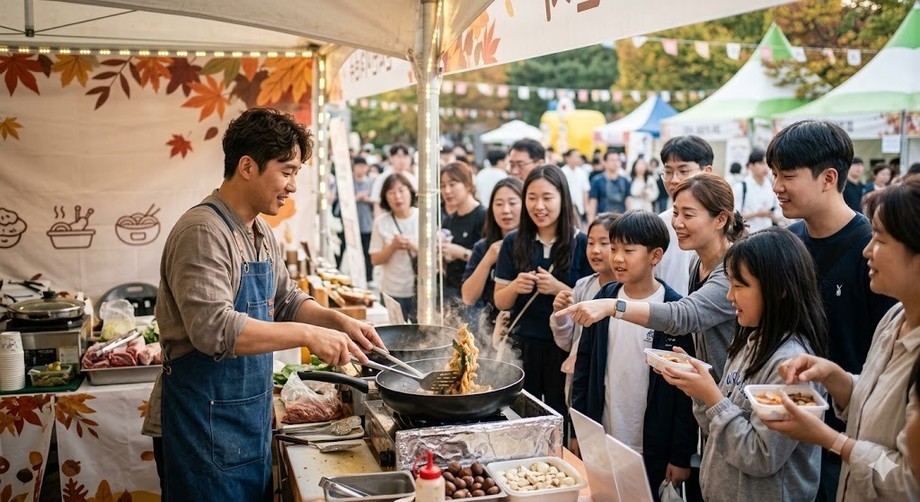 | ▲ 위 사진은 기사 내용과 무관하게 AI(인공지능)가 생성한 이미지입니다. 가을 축제 현장에서 활약하는 소상공인들. (사진 = 제미나이) |