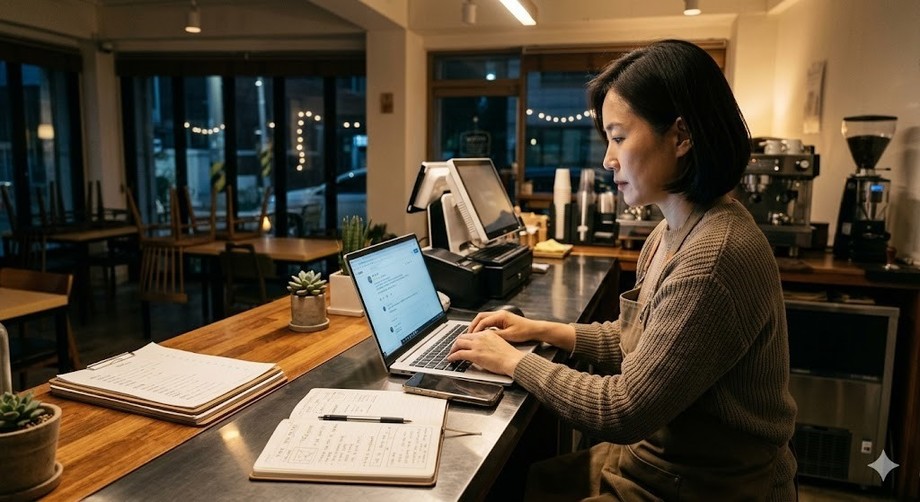| ▲ 위 사진은 기사 내용과 무관하게 AI(인공지능)가 생성한 이미지입니다. 온라인 리뷰 관리로 성공을 거둔 소상공인의 모습. (사진 = 제미나이) |