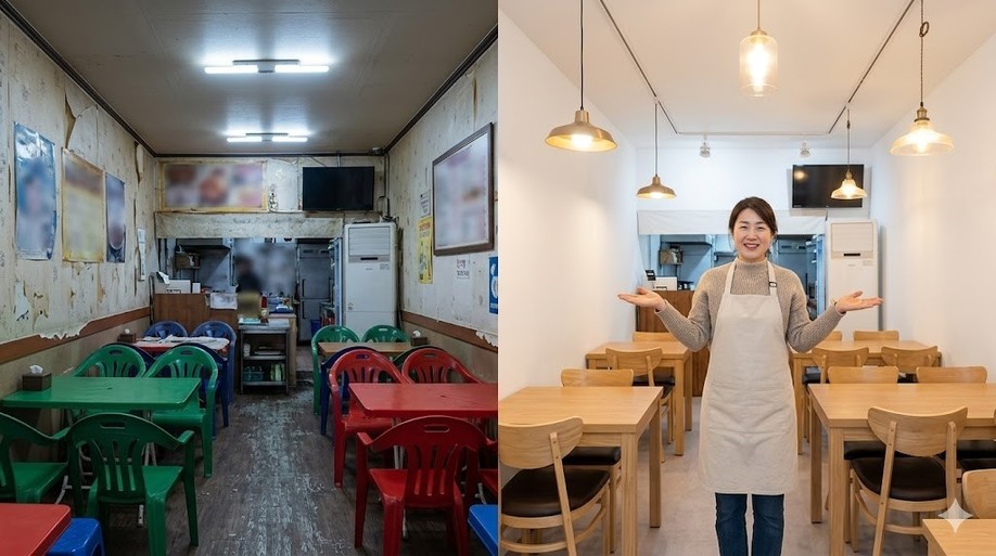 | ▲ 위 사진은 기사 내용과 무관하게 AI(인공지능)가 생성한 이미지입니다. 소규모 리뉴얼로 분위기를 확 바꾼 음식점. (사진 = 제미나이) |