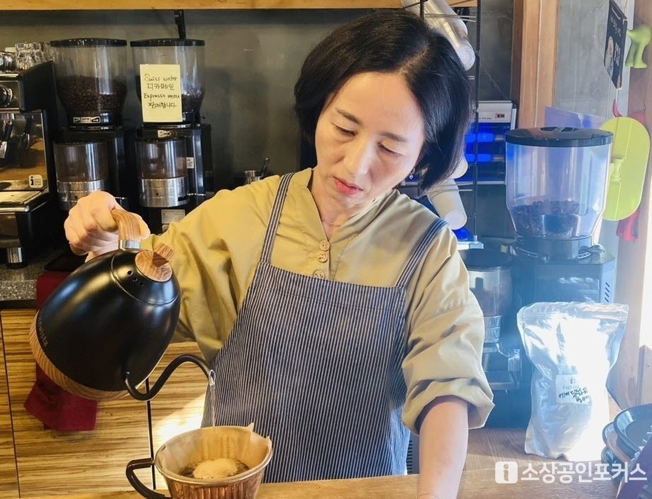 | ▲ 정성스럽게 커피를 내리는 이지은 사장 (사진 = 김영란 기자 / 소상공인포커스 DB) |