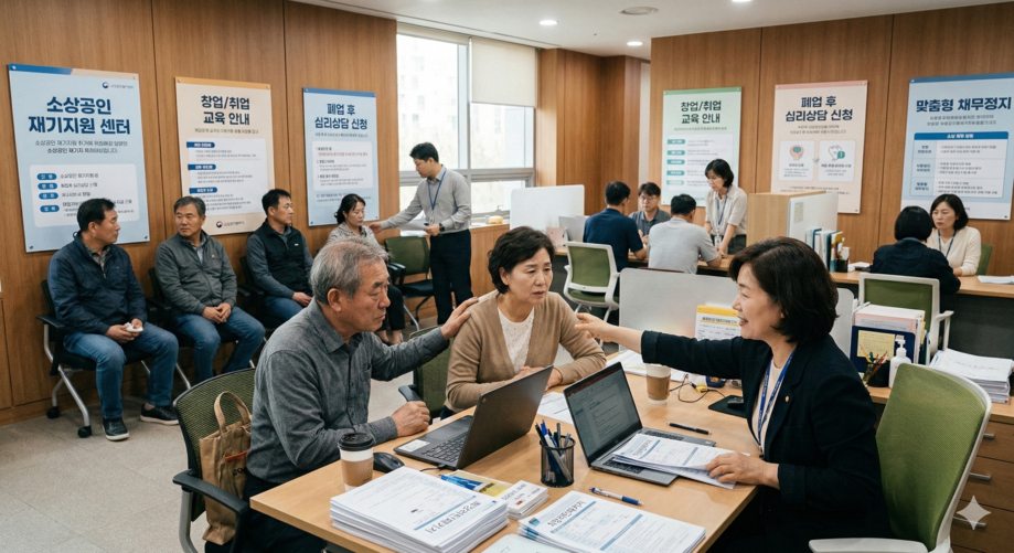 셋째, 심리 케어 프로그램이다. 폐업 소상공인 전용 심리 상담(연 12회 무료), 자조 모임 운영, 가족 상담 지원 등을 제공해야 한다.