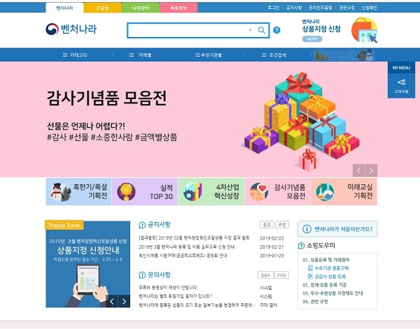 벤처나라는 조달시장 진출이 어려운 창업·벤처기업 제품을 홍보·거래할 수 있도록 나라장터에 구축한 전용몰이다.