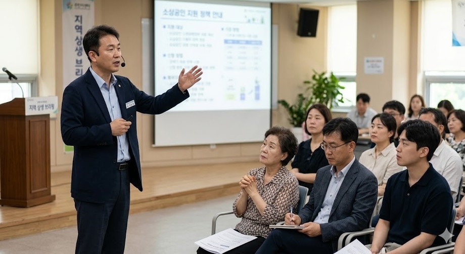 | ▲ 위 사진은 기사 내용과 무관하게 AI(인공지능)가 생성한 이미지입니다. 6월 지방선거 이후 새로운 소상공인 정책을 안내하는 지역 정부의 모습. (사진 = 제미나이) |