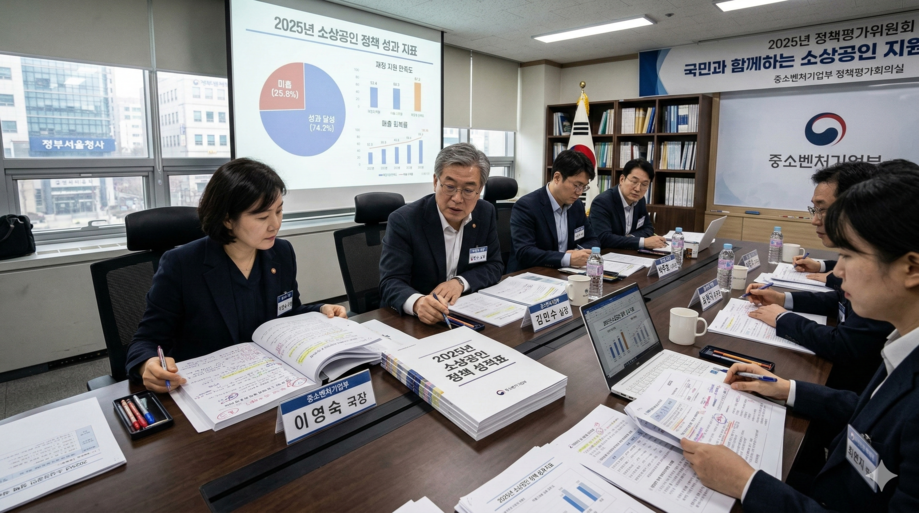 | ▲ 위 사진은 기사 내용과 무관하게 AI(인공지능)가 생성한 이미지입니다. 2025년 소상공인 정책 성과를 점검하는 정부 관계자들. (사진 = 챗GPT) |