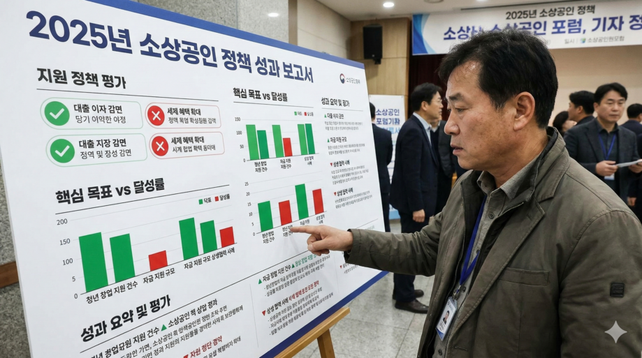 양적 지표로 보면 정책자금 집행률 92%, 새출발기금 지원 4만 2,000명, 경영 컨설팅 12만 건 등 '합격점'에 가까운 성과를 거뒀다. 그러나 폐업률 감소 실패, 체감경기 부진 등 질적 지표에서는 '미흡'이라는 평가가 우세하다.