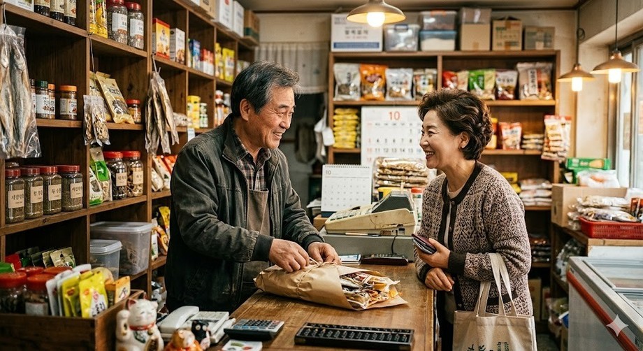 | ▲ 위 사진은 기사 내용과 무관하게 AI(인공지능)가 생성한 이미지입니다. 오래된 가게의 단골 고객과 점포주가 친밀하게 상호작용하는 모습. (사진 = 제미나이) |