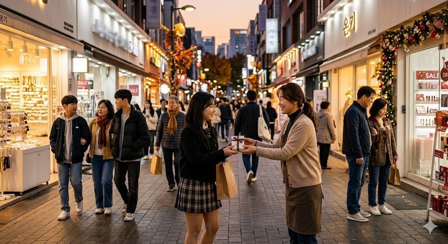 | ▲ 위 사진은 기사 내용과 무관하게 AI(인공지능)가 생성한 이미지입니다. 연말 선물을 준비하는 소비자들과 판매 점포. (사진 = 제미나이) |