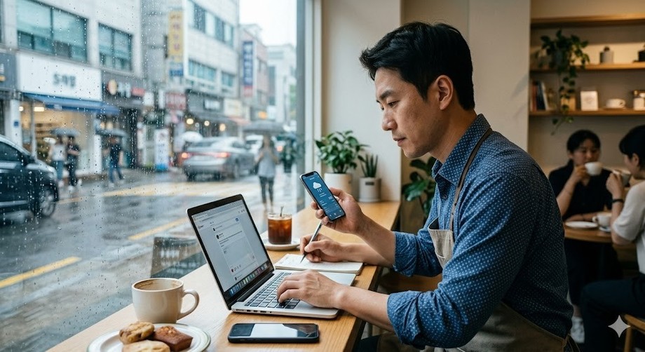| ▲ 위 사진은 기사 내용과 무관하게 AI(인공지능)가 생성한 이미지입니다. 기상 데이터를 기반으로 한 실시간 마케팅을 진행하는 소상공인의 전략. (사진 = 제미나이) |