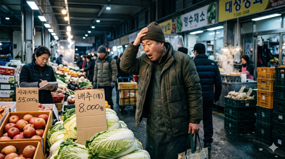 "배추 한 포기에 1만2,000원이라니요. 작년 이맘때 4,000원이었는데…" 서울 가락시장에서 새벽 장을 보던 한식당 사장 이 모 씨(54)의 탄식이다. 2025년 1월, 이상기후의 여파로 주요 식자재 가격이 전년 대비 50~100% 폭등하면서 외식업 소상공인들이 극심한 원가 압박에 시달리고 있다.