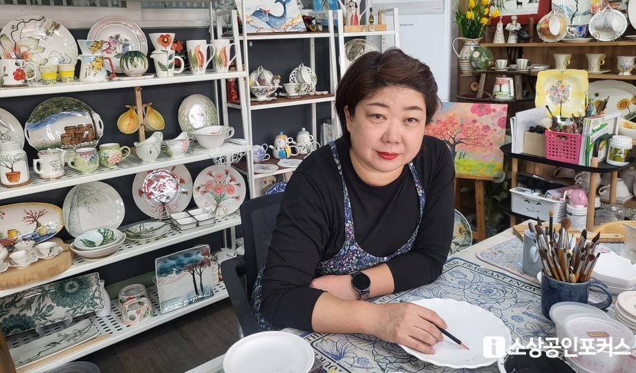 도자기 핸드 페인팅 전문 공방 '하늘공방'을 운영하는 임남숙 대표(52)를 만났다. 6년차로 접어든 이 공방은 수묵, 수채화, 유화까지 다양한 기법으로 도자기에 그림을 그리는 특별한 공간이다. 자격증을 취득한 수강생들이 창업 전 이곳에서 수련 과정을 거치기도 할 만큼, 임 대표의 실력은 업계에서 인정받고 있다.
