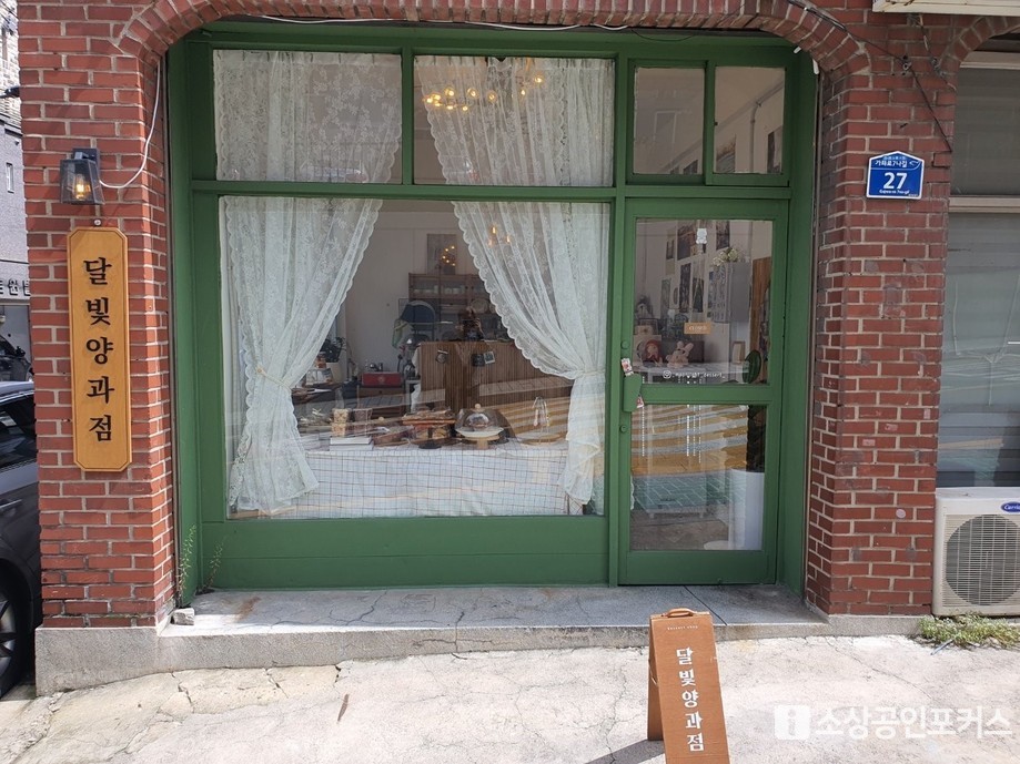 | ▲ 낮에 본 달빛양과점 외관. 초록색 창틀과 나무 간판이 골목에서 조용한 존재감을 발한다. / 사진=이경희 기자 |