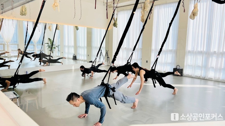 | ▲ 제이스튜디오 플라잉요가 수업 현장 (사진 = 이경희 기자 / 소상공인포커스 DB) |