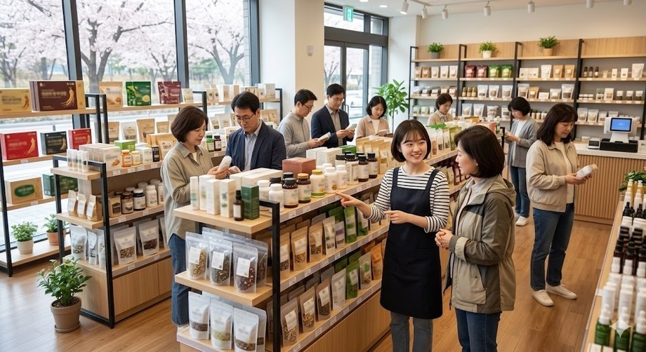 | ▲ 위 사진은 기사 내용과 무관하게 AI(인공지능)가 생성한 이미지입니다. 건강·웰빙 상품을 판매하는 다양한 소상공인들의 매장. 2024년 봄 소비 트렌드는 '건강'에 집중되고 있으며, 이를 활용하는 점주들의 매출이 크게 증가하고 있다. (사진 = 제미나이) |