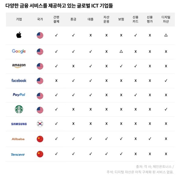 테크핀 시대를 선도하는 ICT 기업은 금융기업 대비 비용과 유저, 데이터 측면에서 강점이 있다. 그러나 중국의 알리바바나 텐센트를 제외한 글로벌 ICT 기업의 금융 사업은 그동안 그리 두각을 나타내지 못했다.