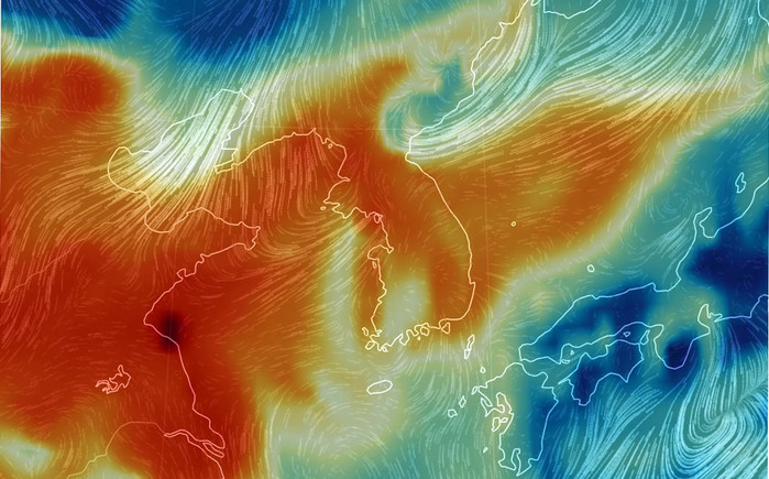 | ▲한반도 상공 대기상황을 보여주는 기상사진.(사진=newsis/어스널스쿨 캡처) |