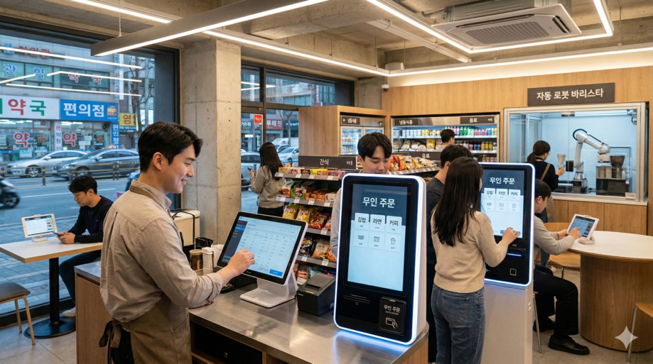 그런데 스마트상점 성공 사례 뒤에는 심각한 우려가 숨어 있다. 기술 도입에는 초기 비용이 든다. 키오스크 1대 설치에 500만~1,000만 원, POS 시스템 200만~500만 원, 재고 관리 앱 월 10~30만 원, 온라인 주문 시스템 월 5~20만 원 등이 필요하다. 정부가 일부를 지원하지만, 소상공인이 자부담하는 비용도 상당하다.