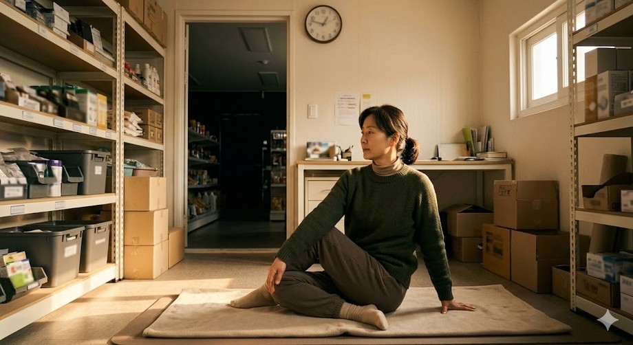 | ▲ 위 사진은 기사 내용과 무관하게 AI(인공지능)가 생성한 이미지입니다. 영업 전 스트레칭으로 건강을 관리하는 소상공인. (사진 = 제미나이) |