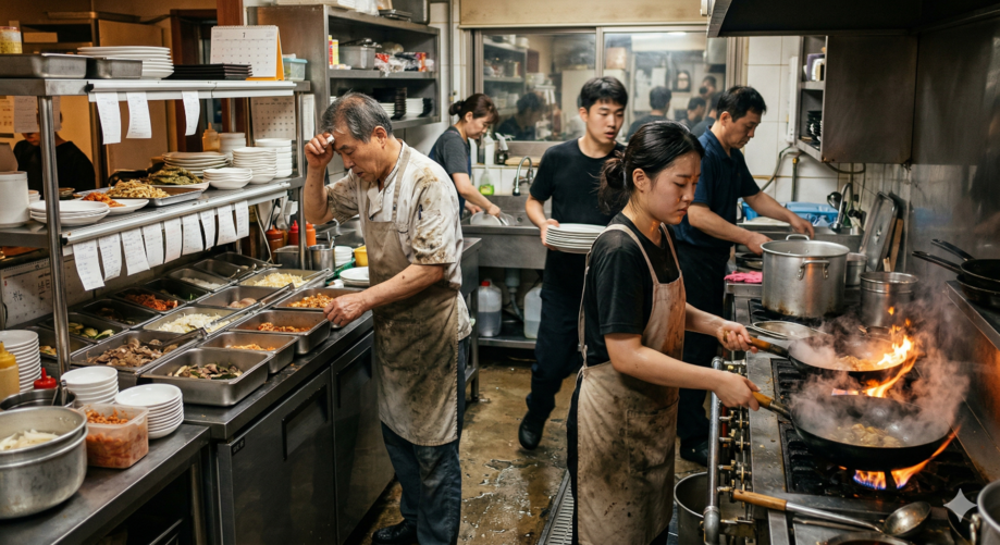 | ▲ 위 사진은 기사 내용과 무관하게 AI(인공지능)가 생성한 이미지입니다. 외국인 근로자 없이는 돌아가지 않는 음식점 주방. (사진 = 제미나이) |