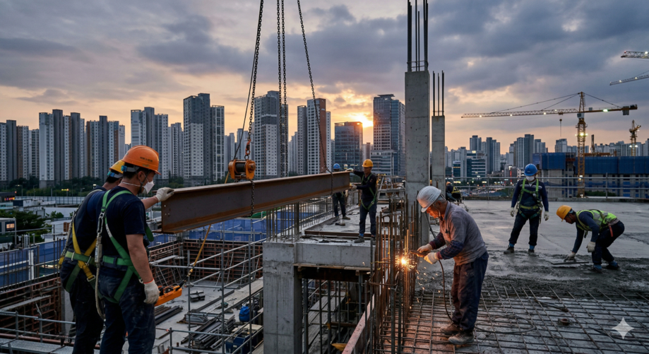 | ▲ 위 사진은 기사 내용과 무관하게 AI(인공지능)가 생성한 이미지입니다.외국인 근로자에 의존하는 건설 현장의 모습. (사진 = 제미나이) |
