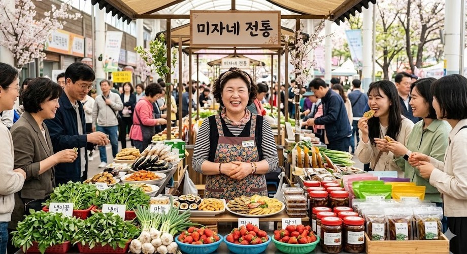 | ▲ 위 사진은 기사 내용과 무관하게 AI(인공지능)가 생성한 이미지입니다. 5월 축제를 통해 고객 증가를 경험하는 전통시장 소상공인의 모습. (사진 = 제미나이) |