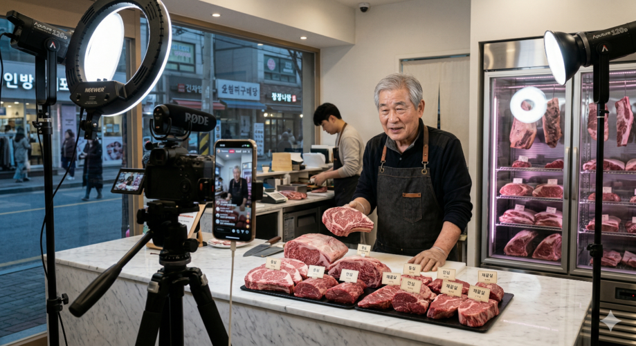 첫 라이브커머스는 2023년 2월 12일 토요일 오전 10시였다. “준비하면서 엄청 떨렸어요. 뭐라고 말해야 할지, 어떻게 고기를 보여줄지… 아들 부부가 옆에 앉아서 도와줬어요”라고 한 사장은 회상했다. 그 첫 방송은 40분 만에 끝났다. 예상했던 3시간 분량의 고기가 모두 팔려버렸다. “40분 동안 우리가 준비한 한우 300만 원어치가 다 팔렸어요. 실시간으로 주문이 들어오고, 계산 방법도 배워야 하고… 진짜 정신없었어요”라고 웃음지었다.
