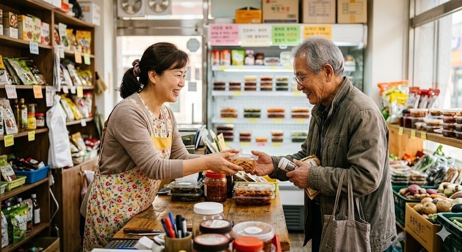 | ▲ 위 사진은 기사 내용과 무관하게 AI(인공지능)가 생성한 이미지입니다. 단골 고객과 따뜻한 관계를 맺는 소상공인. (사진 = 제미나이) |