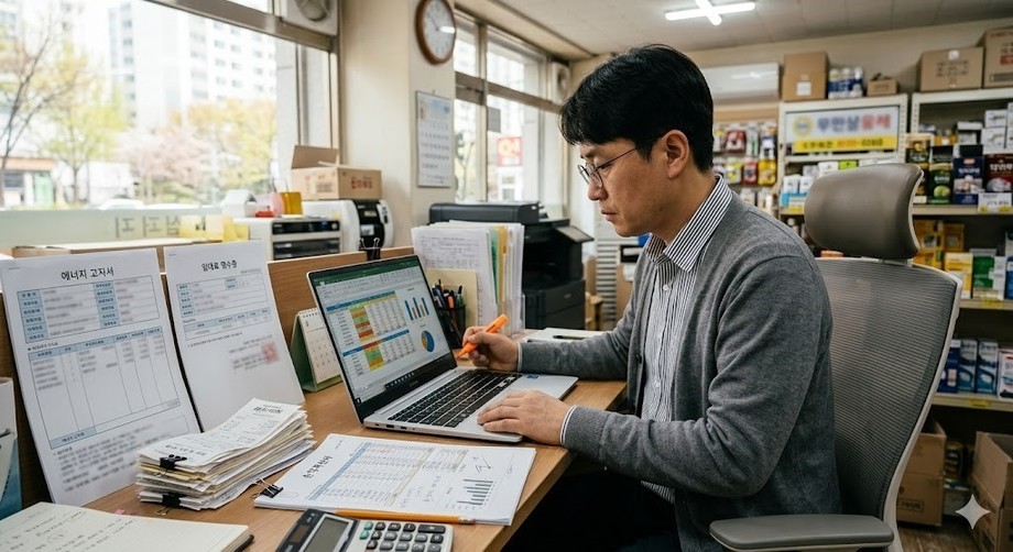 | ▲ 위 사진은 기사 내용과 무관하게 AI(인공지능)가 생성한 이미지입니다. 월 고정비 절감 전략을 검토하는 소상공인. (사진 = 제미나이) |
