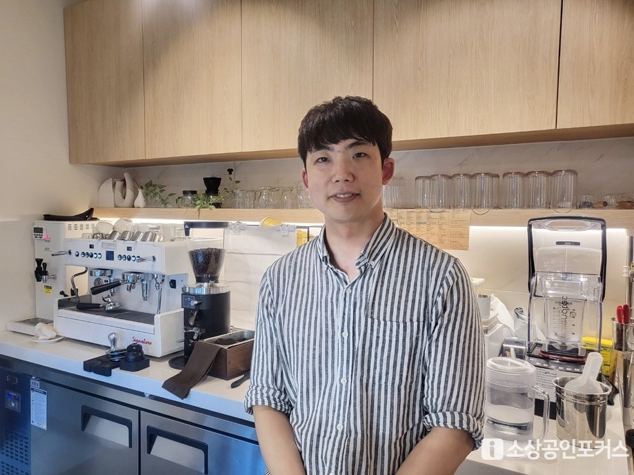 | ▲ 마이유 김병준 대표가 바 카운터 앞에서 환하게 웃고 있다. 제과제빵 10년 경력의 청년 사장이다. (사진 = 이경희 기자 / 소상공인포커스 DB) |