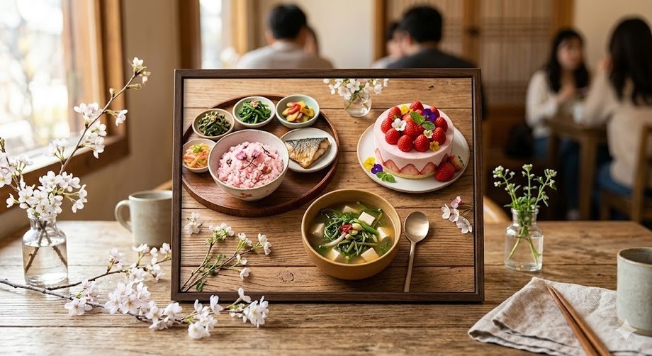 | ▲ 위 사진은 기사 내용과 무관하게 AI(인공지능)가 생성한 이미지입니다. 봄 한정 메뉴를 소개하는 음식점 디스플레이. (사진 = 제미나이) |