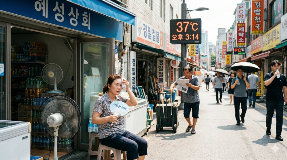 7월 중순, 전국에 폭염특보가 발효된 가운데 소상공인들의 냉방비 부담이 극한에 달하고 있다. 기상청에 따르면 올해 7월 전국 평균 기온은 27.3도로 평년(25.8도)보다 1.5도 높으며, 서울의 경우 35도 이상 폭염일이 7월 중순까지 이미 8일을 기록했다.